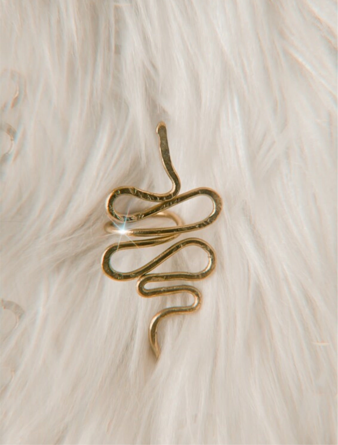 Simple and stunning. Brass wire has been thoughtfully wrapped around twists and turns to create this simple statement serpent ring.